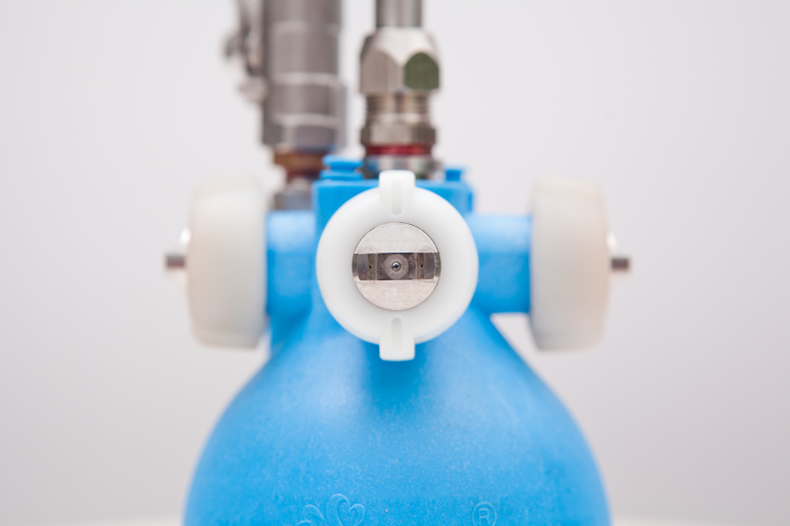 比例调节装置内部需要很高的真空度要求,所有的密封材料和运动部件需要有很高的动密封性。如果真空度密封不良,将导致气水混合比例不准确。严重影响雾化效果。需要大量的试验数据以确定内部膜片弹性及弹簧压力。