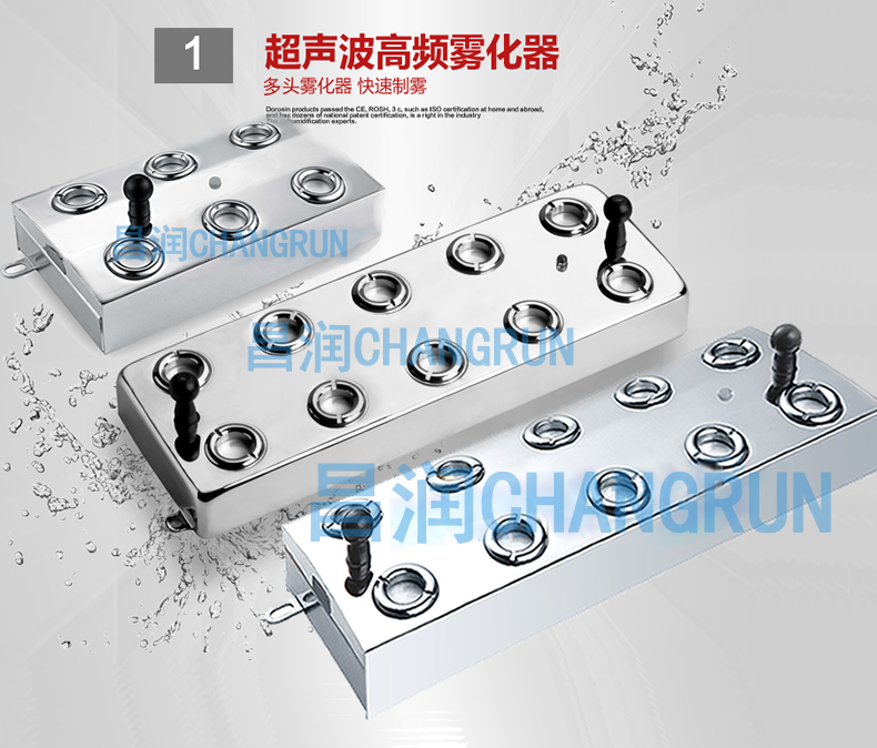 通过超声震荡原理作用于水产生空化效应,将水变成可漂浮于空气中的极细小的微雾(水雾颗粒直径在5um之内)与空气充分混合从而达到加湿的目的。水雾中含大量空气负离子及水分子,增加空气湿度的同时更能够清新空气,是目前国内外应用较为广泛的一种加湿方式